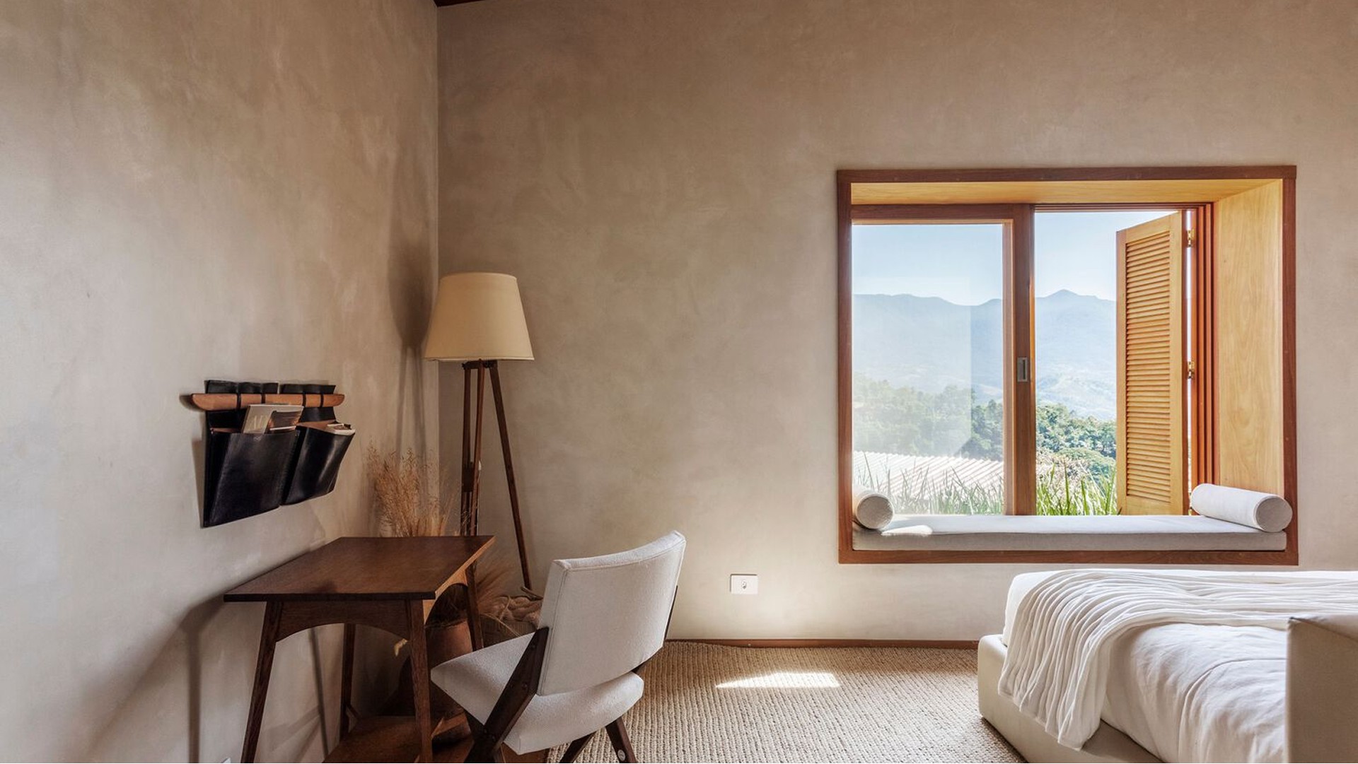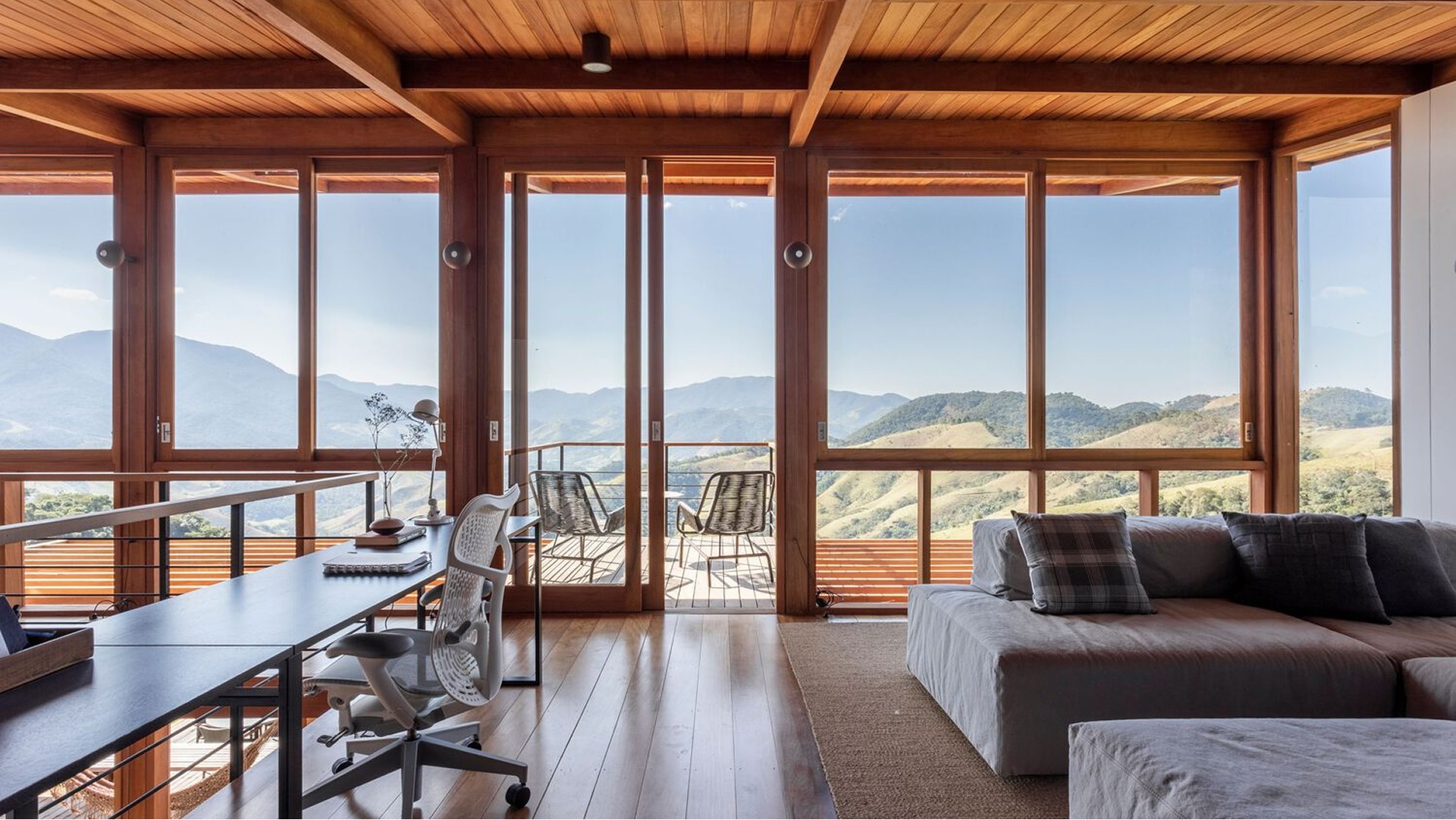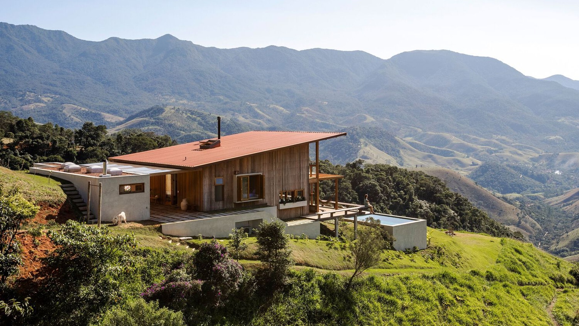 O cliente queria uma casa térrea de madeira, integrada à natureza e adaptada ao clima frio e úmido de São Francisco Xavier. Em um terreno inclinado com vista, usamos blocos cerâmicos para conforto térmico e madeira apropriada na área interna e externa. A casa em meio-nível, com beirais largos, brises retráteis e fachada envidraçada voltada para a paisagem, equilibra proteção climática e leveza visual. Em parceria com Rappaport Arquitetura.