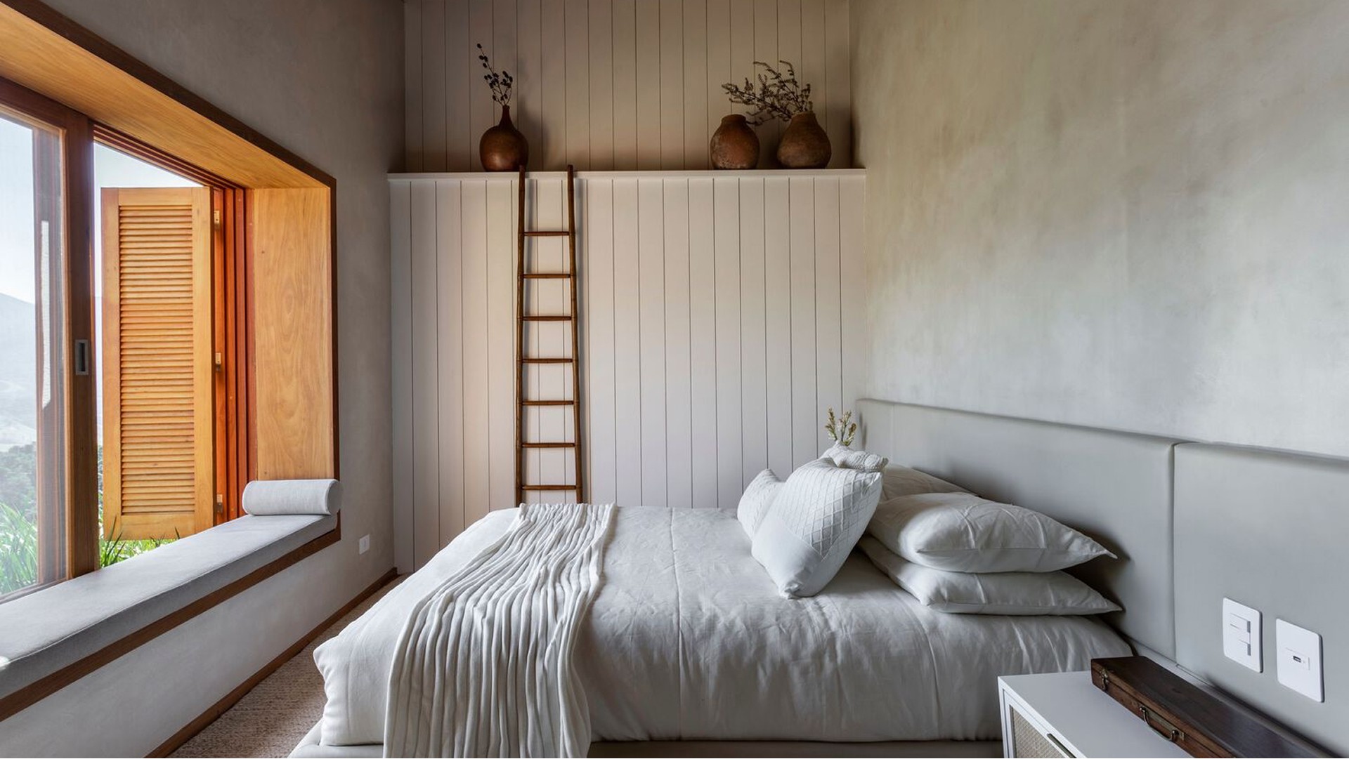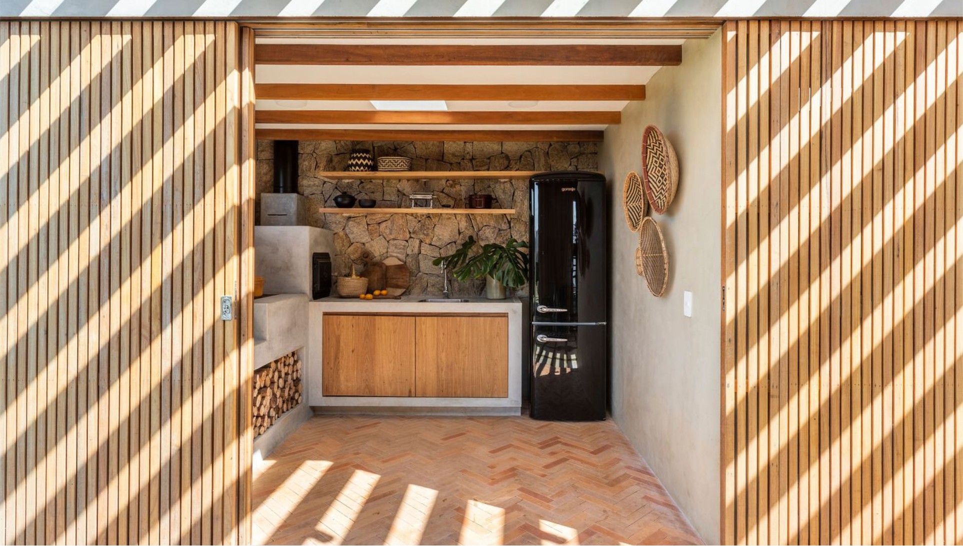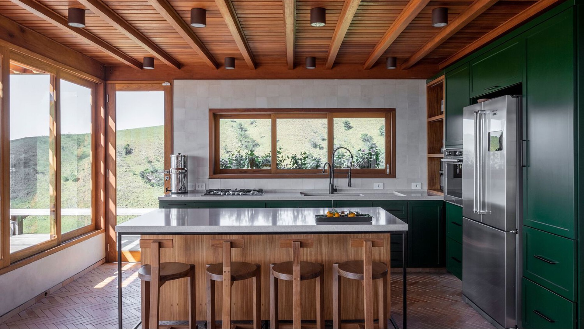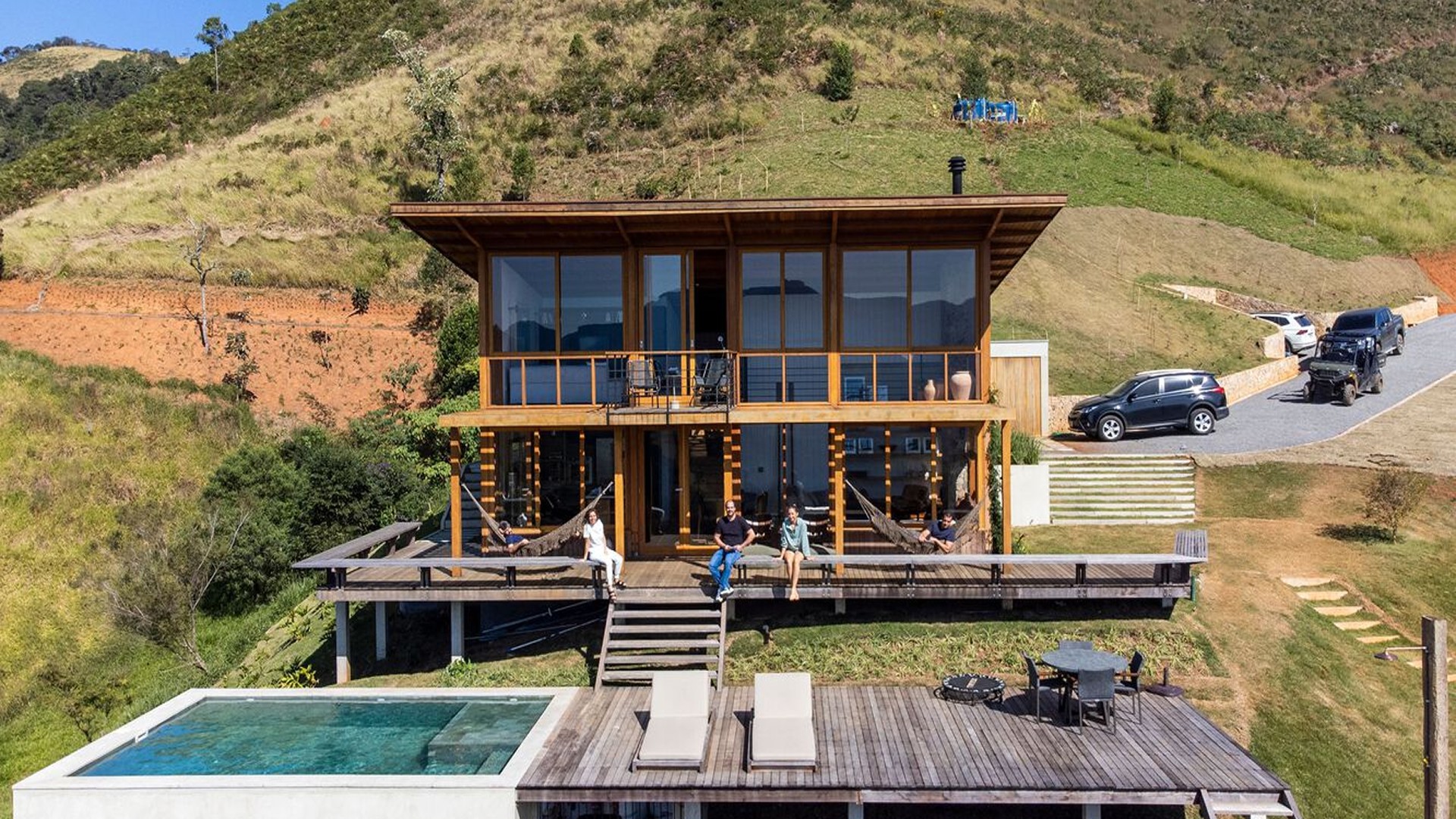 O cliente queria uma casa térrea de madeira, integrada à natureza e adaptada ao clima frio e úmido de São Francisco Xavier. Em um terreno inclinado com vista, usamos blocos cerâmicos para conforto térmico e madeira apropriada na área interna e externa. A casa em meio-nível, com beirais largos, brises retráteis e fachada envidraçada voltada para a paisagem, equilibra proteção climática e leveza visual. Em parceria com Rappaport Arquitetura.